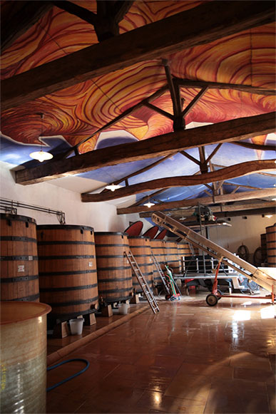 After a quick yet careful delivery from the vineyard to the cellar, the grapes are then cooled in refrigerated trucks. Later the whole cluster bunches are moved into a vat. We practice a “semi-carbonic” maceration, meaning a vinification in which the majority of the berries remain intact and are then saturated with CO2 inside of a closed vat. In this atmosphere, the enzymatic activity manages to start the fermentation. This long maceration will have the effect of transmitting the red color of the grape skin to the white juice. As the acids begin to break down the berries, a broad spectrum of aromatics are created. All this activity takes place before the wine begins to ferment its sugar into alcohol!